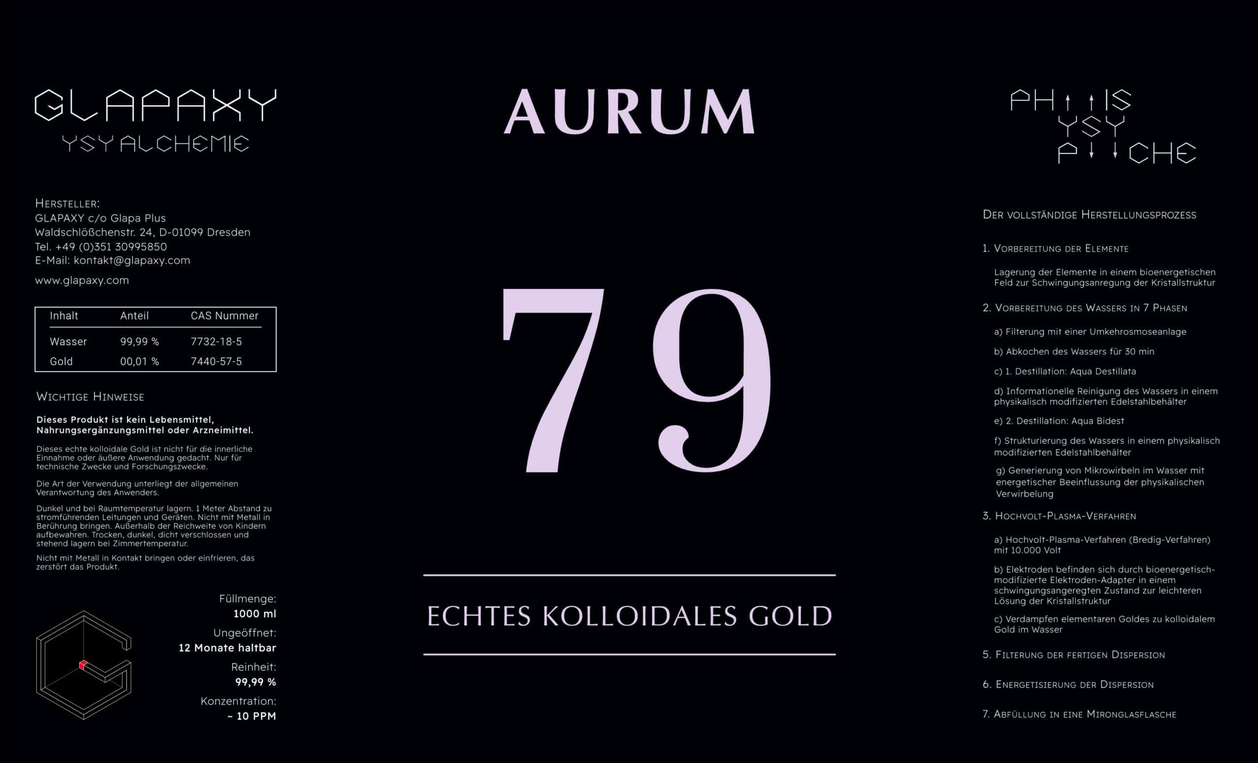 Kolloidales Gold ist eine hochreine Dispersion aus Gold-Nanopartikeln (~ 10 ppm) in speziell aufbereitetem, reinem Wasser. Mit einer Reinheit von 99,99 % und der innovativen Hochvolt-Plasma-Technologie stellen wir ein Produkt her, das höchste Qualität und Stabilität gewährleistet.