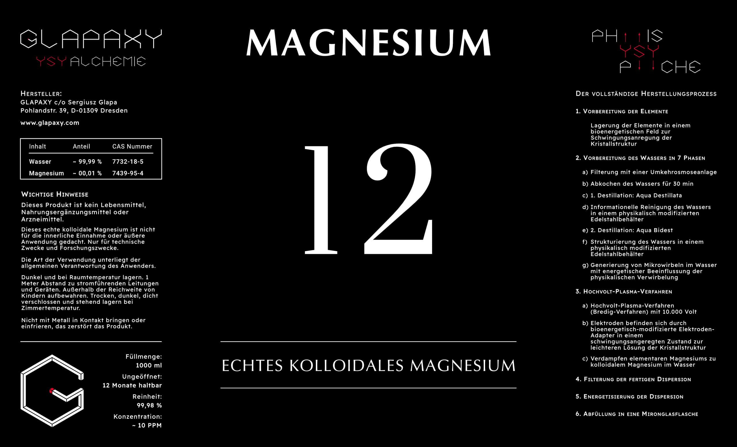 Dieses echte kolloidale Magnesium ist nicht für die innerliche Einnahme oder äußere Anwendung gedacht. Nur für technische Zwecke und Forschungszwecke.